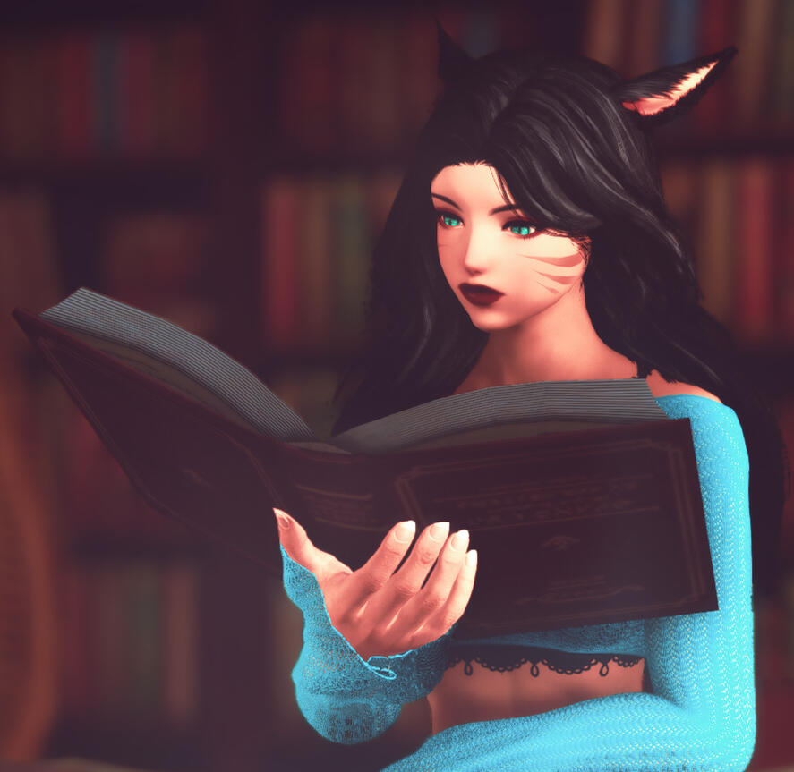 Life for Serena wasn't always easy. After losing her parents at age 10, she was forced to grow up in the harsh streets of Ul'dah alone for a time. The girl had to quickly adapt and figure out how to survive. When she was young, she hunted and traded for her food, and as she got older, she started using her skills as a dancer to earn her keep.From the ages of 4-10, a friendly Vieran neighbor taught Serena the fighting art of dancing, as well as the aesthetic art. When Serena arrived back in Ul'dah, she honed her skills and became a master at the craft. To this day, she still keeps up with her training, ensuring she's always in top physical shape in case she ever needs to go back to it.From the ages of 15-17, Serena lived with her friend Jay. The two took care of one another and watched each other's backs until one day, Jay disappeared without a trace, leaving her lonely and feeling abandoned.The life of a dancer in Ul'dah was not an easy one. The Miqo suffered her fair share of trauma while trying to make ends meet, but ultimately was able to join a troupe and dance at prestigious clubs and venues for money. For a long time, she danced with the troupe and on the street, but the physical strain on her body and the unsavory patrons caused her to seek a new career.Eventually, Serena started working at various bars in order to make ends meet. The scene was far nicer than dancing, mostly because she could control her own outfit and how she interacted with guests. While visiting a café one day, Serena and Jay reconnected, which reignited her desire to make new friends and branch out. She now loves to frequent different venues in search of new friends. She lives in Gridania with her husband, Ziero, their crab Mr. Pinch, and their dog, Button.